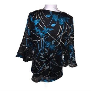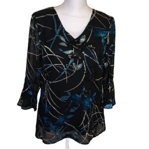 Roz & Ali Black and Teal Floral V-Neck Blouse