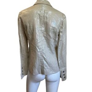 Rozae Nichols Metallic Wheat Linen 3 Button Blazer Jacket sz 6 EUC