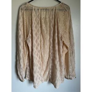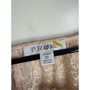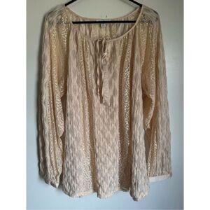 Roz and Ali Blush Lace Sheer Floral Tie Front Peasant Blouse sz 3X Boho Cottage