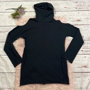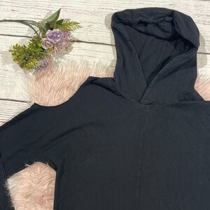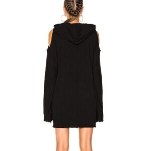 RtA Cold Shoulder Pullover Joelle Sweatshirt Hooded mini Dress in Noir black. This dress is in great used condition