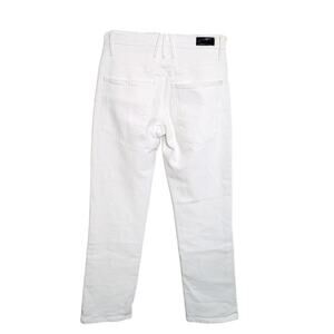 Rock these RtA Dexter half-belted white boyfriend relaxed straight leg jeans! These jeans feature a genuine leather black belt attached on the sides with stylish buckles in the front. As seen on Kourtney Kardashian, they feature a zipper fly and a flattering high-waisted design.