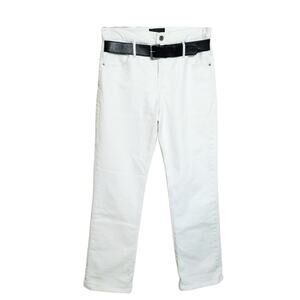 RtA Dexter Belted Boyfriend Straight Jeans White Black Leather $325 XS