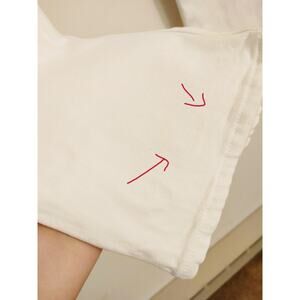The 5-pocket design and looser waist provide a relaxed fit that sits perfectly above the belt, giving off a vintage 90s-inspired vibe. While there are a few very faint spots (pointed out in the pics, though barely visible), they are hardly noticeable when worn. One mark is above the label on the back waistband, and others are on the very bottom of the legs.