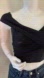 RtA Guadalupe Black Ribbed Cotton & Mesh Off the Shoulder Corset Style Crop Top