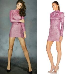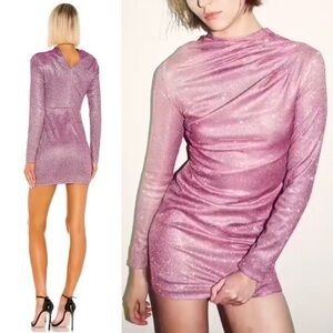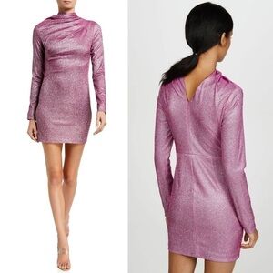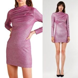 RtA Metallic Pink Shimmer Long Sleeve Ruched Draped Cowl Neck Bodycon Dress 0
