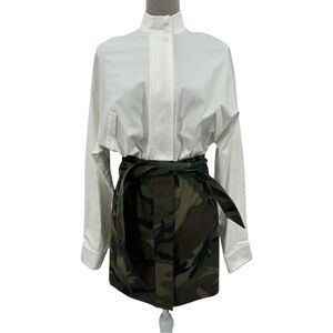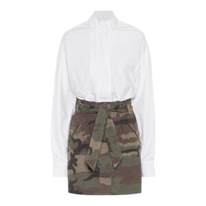 Tap RtA's cool-girl energy with the Niccola minidress. Combining a white cotton shirt and camo-print miniskirt, this design promises to take the effort out of curating just the right amount of edge. Wear yours with combat-inspired boots and spiked accessories to complete the edit.