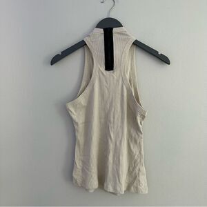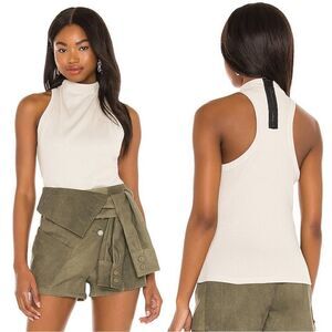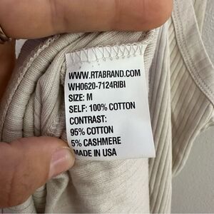 Self: 100% cottonContrast Fabric: 95% cotton 5% cashmere. Mockneck with exposed back zipper closure. Ribbed jersey fabric. Made in USA