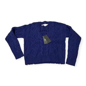 RtA Zane Reverse V-Neck Cable Knit Sweater, Blue, Size S, New with tag