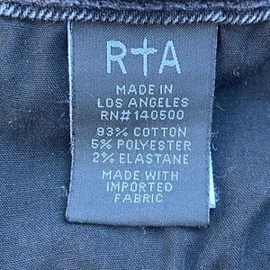 RtA Black Washed Distressed Cuffed Cropped Jeans. Size 25. Fraying cuffs and threadbare distressing bring the brand's signature grungy to a new level. Made in Los Angeles. Ships from a smoke and pet free home.