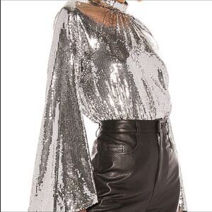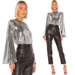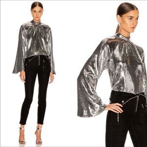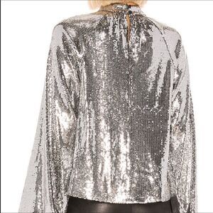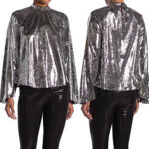 RtA Tennessee Peasant Silver Sequin Bell Sleeve Top Sz XS NWT is brand new with tags