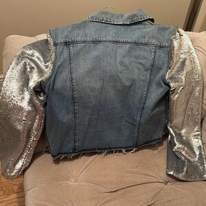 Denim jacket with sequins sleeves
