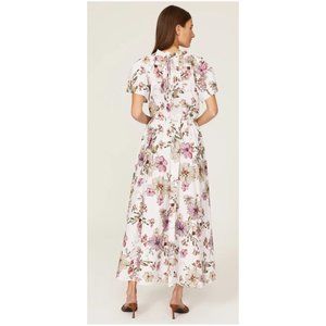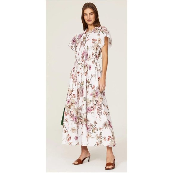 Rtr midi sz 12 Adam Lippes pink floral shirred tie waist cap sleeve dress pleat