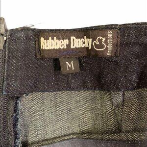 Rubber Ducky Productions Jeans Flare Dark Wash, Size M, inseam 31", waist 28", very stretchy. 96% cotton 4% spandex.