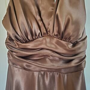 Rubber Ducky Productions Sexy Pinup Halter Brown Satin Mini Dress, Size Medium