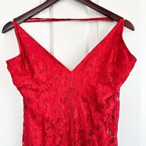 Rubber Ducky Sexy Red Lace CrissCross Straps Maxi Dress with Plunging V-Neck