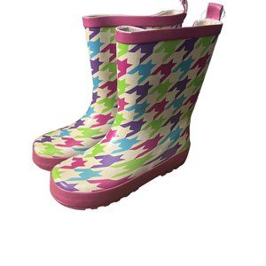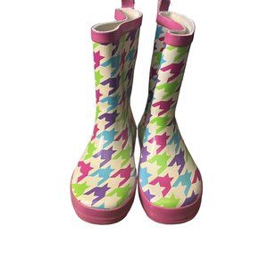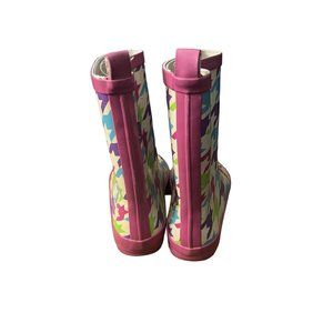 These Rubber Rain Boots are in Very Good preowned condition. Boots are made of PVC/Plastic/ Rubber to keep your feet dry when walking out in the rain. Boots are perfect for gardening and working outdoors in muddy condition. Boots are easy to clean simply by spraying off and wiping with a towel;