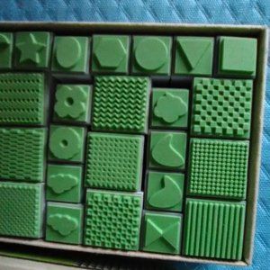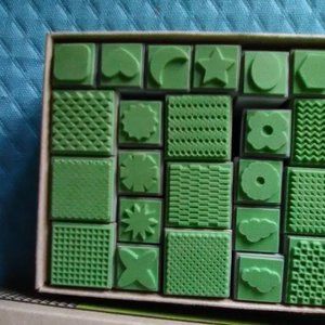 PDS Stamper Set...contains 33 designs and patterns... 1" and 1/2" rubber stamps mounted on 1.5" deep plastic cubes...designed by Ying Amarangkul/2012 Praditsilpa Center Co., Ltd... good condition...never used in original box...made in Thailand.