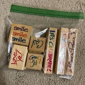 New set of 6 stamps. Never used, set of 6. They say “great job” “smile smile smile” “love ya” “great job” “cool” “party time” “let’s celebrate” and “flower power.” Brand is “Stamps, Etc.” All items from smoke free, pet friendly home. Open to offers and bundle for a discount!