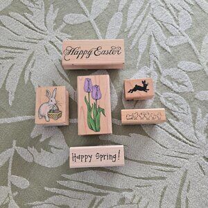 Lot of assorted rubber stamps for Easter and Spring. You are buying all 6 stamps. Fun crafting!