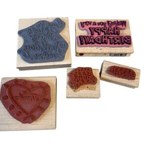 Rubber Stamps Set Of 5 Birthday & Thank You Designs Wood-Mounted