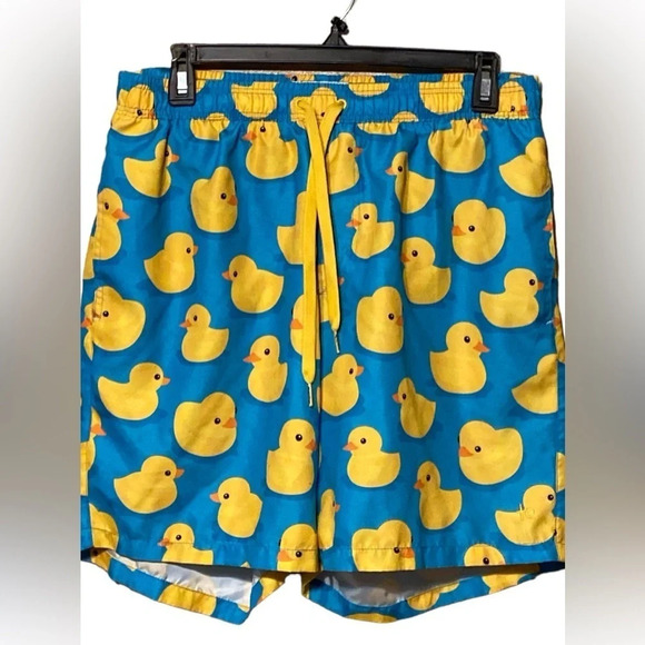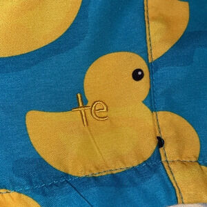 Tipsy elves rubber ducky shorts. Front pockets, one back pocket, drawstring waistband, approximately a 7 inch inseam. The mesh underwear part has been cut out of this piece. Pair with some bike shorts and they’ll be great in the water! Or just wear as shorts, super cute!