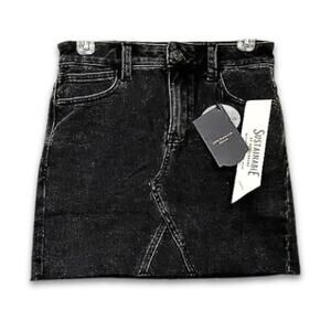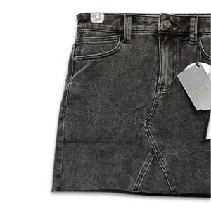 Rubberband Mini Skirt Frayed Hem Functional Pockets Denim Black W US 28 7/8 NWT