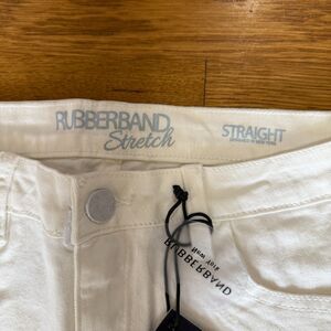 Rubberband Stretch Distressed Hem White Straight Leg 26