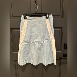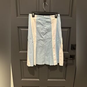 Absolutely love love love this skirt. It is so flirty and feminine with the cut of the blue and white it is firm fitting yet doesn’t hug the skin