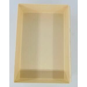 Optimize your search with this preowned Rubbermaid drawer organizer tray, measuring 9 x 6.25 inches with 2-inch high sides. Crafted from durable hard plastic, it features an interlocking design for enhanced organization. Detailed with marks on the bottom side (see picture 2) and labeled as JBI 2916, this beige tray offers functional storage solutions for your home or office. Ideal for decluttering and maximizing space, this versatile organizer is a practical addition to any environment.