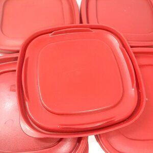 Rubbermaid Set of 5 Easy Find 7J64 Replacement Lids 6.5” Square Red plastic