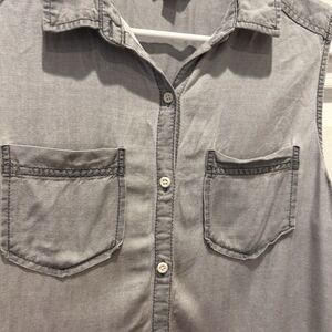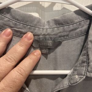 Rubbish Button Up Collared Sleeveless Shirt Gray Womens Size Large Beachy Summer