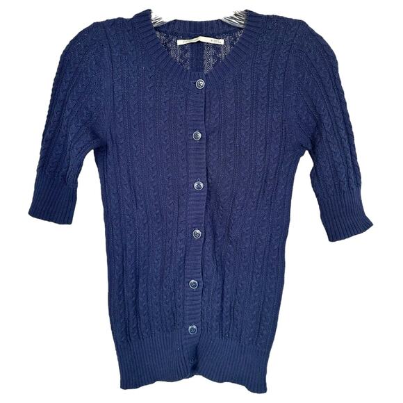Rubbish Women's Button Down Cardigan Sweater Half Sleeve Size M Navy Blue