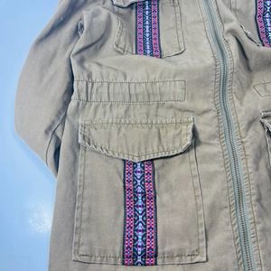 Rubbish Womens Small Olive Green Mock Neck Aztec Pockets Utility Jacket