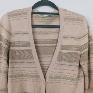 Rubbish cardigan sweater size S colors light pink & brown design pockets on the front button up the front.