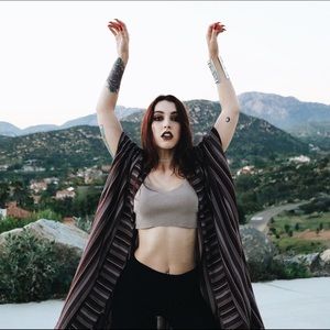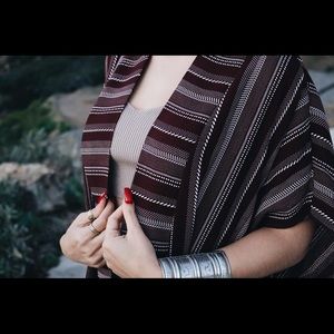A more simplistic design with lines and a prominent dark maroon color option, this kimono is perfect for dressing up or even a day at the beach. Its got just enough edge and just enough modesty to be an ideal addition to your closet.
