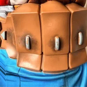 • Includes padded jumpsuit, attached belt, and molded mask