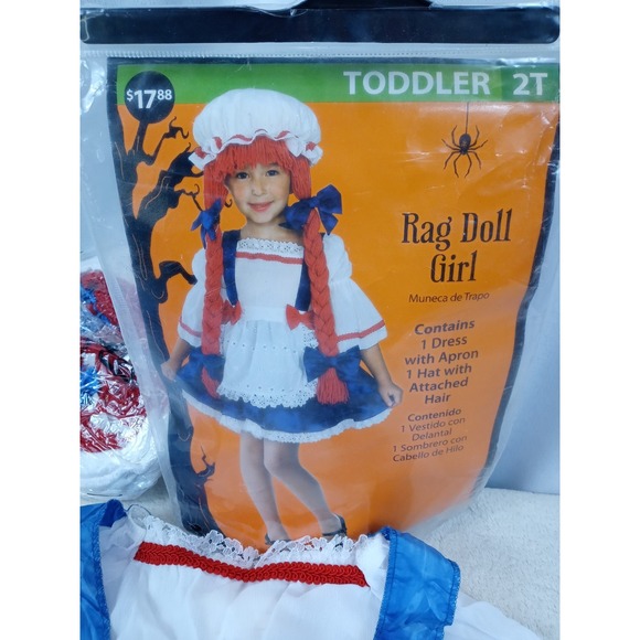 Rubies Rag Doll Girl Costume Toddler 2T Halloween Red White Blue Dress Hat Wig