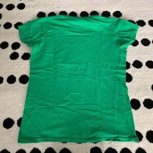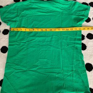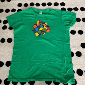 This Rubik's Cube shirt for women in size large features a Kelly Green graphic on a classic short sleeve tee. Made from 100% cotton jersey fabric, this pullover shirt is perfect for casual occasions, travel, or parties. The shirt is machine washable and designed with a crew neck and regular fit for comfortable wear. Whether you're into retro 80s style or just love solving puzzles, this Geek-themed shirt is a fun and stylish addition to your wardrobe.