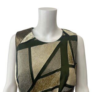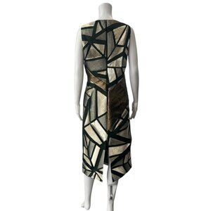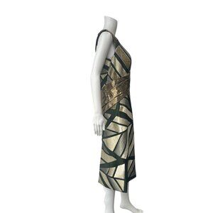 Rubin Singer 2014 Green Gold Metallic Panel Midi Dress size 6