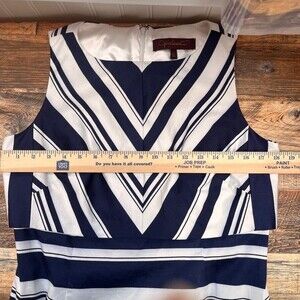 Rubinstein "Laurena" Navy & White Chevron Striped Shift Dress 12