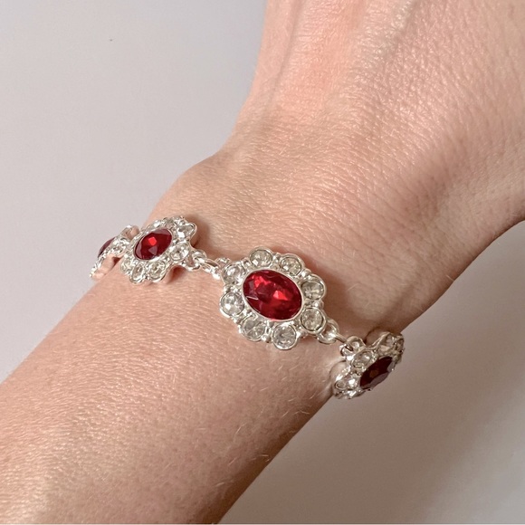 Beautiful costume piece with ruby and diamond CZ simulant. This matches the other ruby pieces in my closet. I have a ring, earrings, and necklace in the set. I can do a great price on the suite, or feel free to make an offer on individual pieces! All of the ruby and diamond jewelry would add elegance and eye catching sparkle to an outfit for an event, night out, or performance. Let me know if you need more photos!