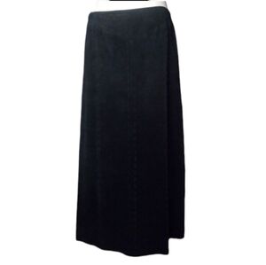 Ruby Cho Black 100% Suede Leather Whip Stitch Detail Maxi Skirt Size 12