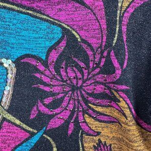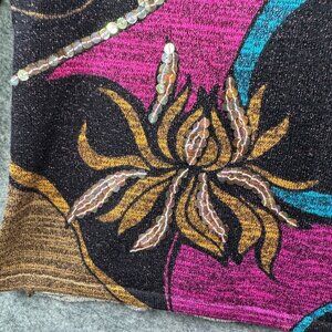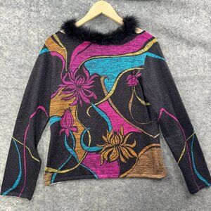 Ruby Cho Top Womens M Silk Blend Fur Collar Metallic Sequin Formal Floral Artsy