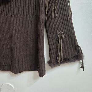 Ruby Cho Womens Vtg Y2K Fairy Grunge Wool Blend Fringe Faux Fur Trim Sweater S