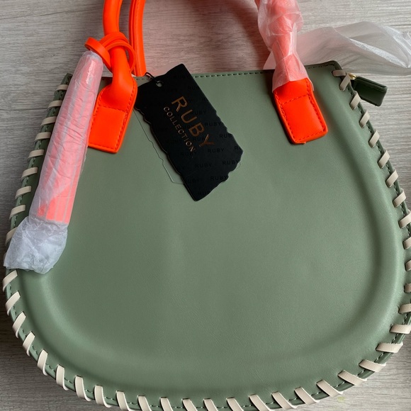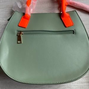 Mint handbag with neon orange straps