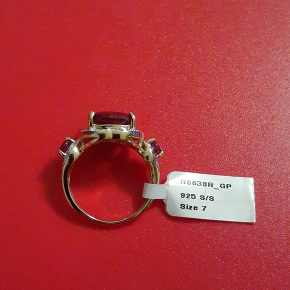 Gorgeous Women's 14k Yellow Gold Over Sterling Silver Ruby Size 7 Designer Ring ,new with out tag.