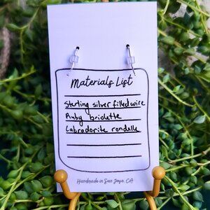 These Ruby Dangle Earrings hold a special place in my heart. I discovered the stunning rubies while exploring a quaint bead shop tucked away in a charming seaside town on the northern California coast. The shop, literally overlooking the cliffs and the ocean, had an eclectic collection of gemstones, and as soon as I laid eyes on these rubies, I knew they would make a perfect addition to my collection. Paired with either a labradorite or carnelian accent, the earrings carry with them the serene energy of the sea and the timeless beauty of these precious stones. Let me know your color preference!