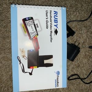 Ruby Handheld Video Magnifier in Good condition. Comes with the rechargeable batteries but not sure they work. I will include a large pack of AAA batteries for free. Pretty cool gadget. Case is dirty but durable. Original $545.