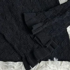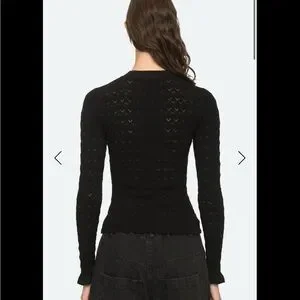The Rue fine gauge knit sweater features ruffle cuffs and is crafted for a slim fit. The perfect layering piece.