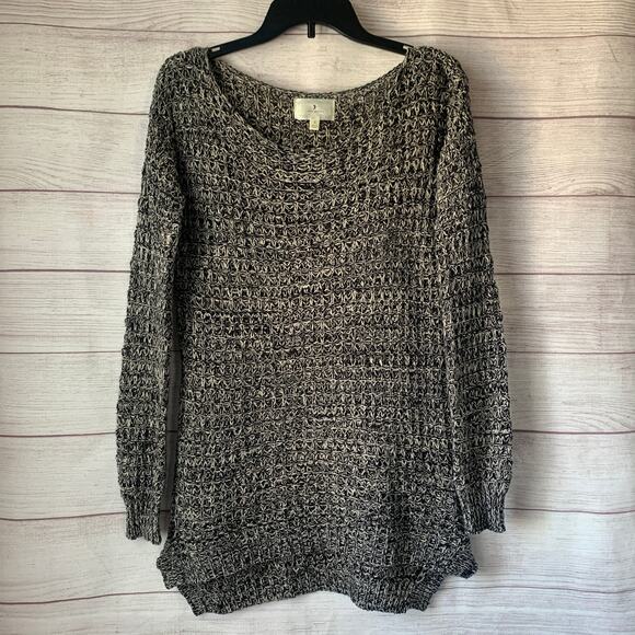 Ruby Moon Black and Cream Knit Weave Sweater Pullover Long Sleeve Size Small